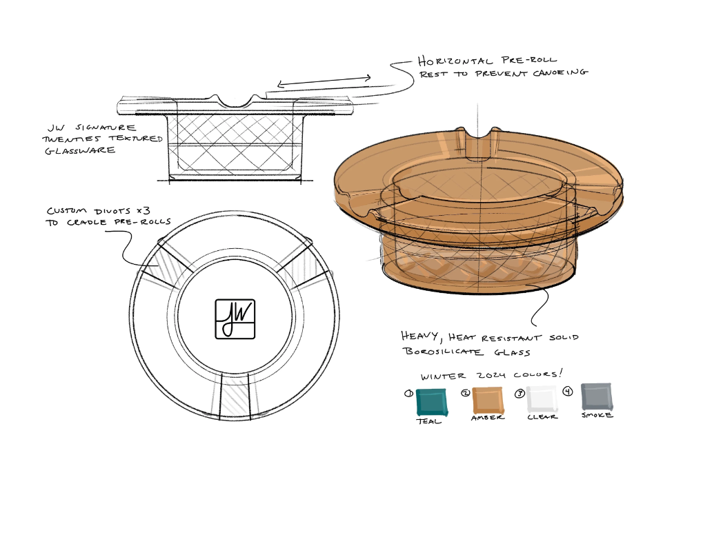 Three custom divots cradle a pre-roll perfectly with a wide, horizontal rim ensuring your joint burns evenly and doesn't canoe.